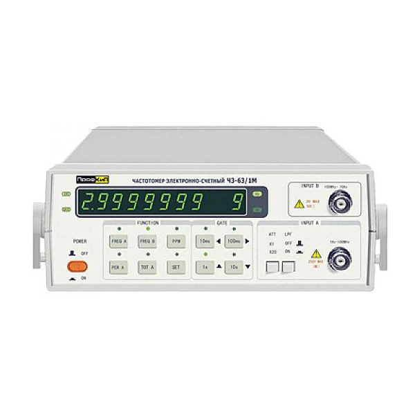 Частотомер электронно-счетный ПРОФКИП Ч3-63/1М предназначен для измерения частоты и периода синусоидальных сигналов, частоты и периода повторения импульсных сигналов, длительности импульсов, отношения частот электрических сигналов, счета числа (суммирования) электрических колебаний.