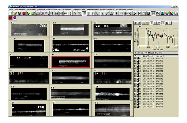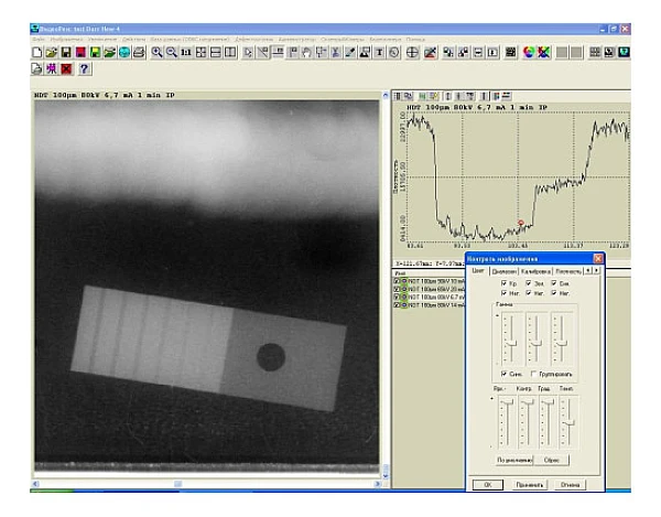Специальная среда для работы с архивом результатов контроля позволяет создавать проекты, объединять снимки в группы, искать необходимый снимок в архиве по различным критериям (дата контроля, название проекта, подзаголовок (описание), источник излучения).