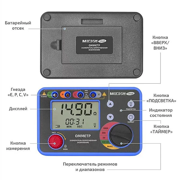 Купить Омметр (измеритель сопротивления заземления) МЕГЕОН 13020 в Нижнем Тагиле легко — просто позвоните по телефону: 8-800-551-11-01