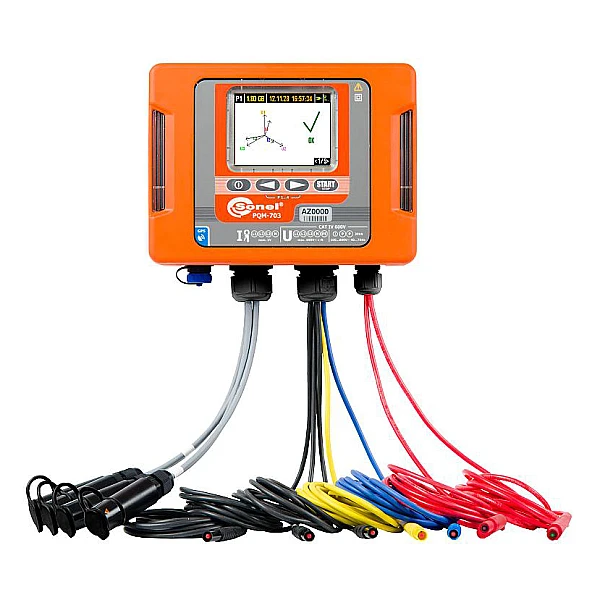 PQM-703 разработан для проведения регистрации и анализа параметров качества электрической энергии в сетях с номинальными частотами 50/60 Гц, согласно ГОСТ 32144-2013. Прибор соответствует ГОСТ 30804.30-2013 (класс А) и ГОСТ 30804.4.7-2013. Программное обеспечение Sonel Analysis позволяет быстро произвести настройку прибора и сформировать отчет рекомендованный ГОСТ 33073-2014. PQM-703 адаптирован для работы в сложных погодных условиях: диапазон температур от -20° до +55°С. Стабильная работа при отрицательных температурах обеспечивается за счет встроенного нагревателя. Степень защиты корпуса соответствует IP65. Анализатор может непрерывно работать, питаясь от тестируемой сети переменного напряжения. В случае отключения внешнего питания, работа измерителя поддерживается от внутренней аккумуляторной батареи.