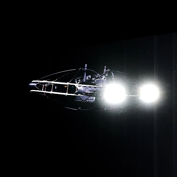 Полётные задания автоматизированы. Есть возможность ручной коррекции задания оператором дрона. Встроенные системы навигации ориентируются в пространстве без GPS на расстоянии до 1000 метров, дрон автоматически распознаёт и обходит препятствия, не боится столкновений. При потере связи устройство автоматически возвращается в точку старта. Корпус защищён от ударов и контакта с конструкциями, что критично для полётов в тесных и тёмных помещениях. На борту - лидар, 4K-камера с гиростабилизацией и мощная светодиодная подсветка. Дрон можно дооснастить полезной нагрузкой, например, тепловизором, ультрафиолетовой камерой или газоанализатором для обнаружения утечек газа.