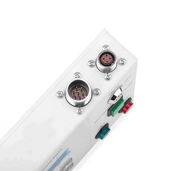 Пульт управления оснащен замком безопасности, что исключает возможность несанкционированного запуска рентгеновского излучения. В верхней части пульта находятся разъемы для подключения к блоку питания и блоку сигнализации. На дисплей пульта управления выводится вся необходимая для оператора информация: напряжение на трубке (U, кВ), анодный ток (I, мА), время экспозиции (T, сек.), температура изолирующего масла (t, °C).