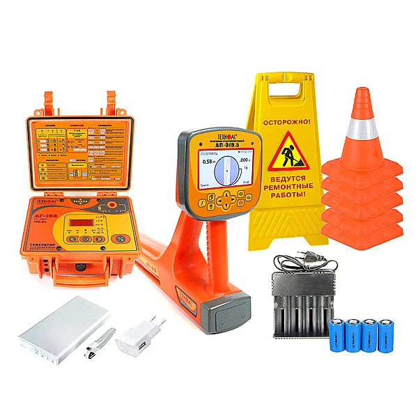 Комплект оснащен новейшим компактным автономным генератором АГ-108 со встроенными элементами питания, дисплеем и встроенной индукционной антенной, для трассировки коммуникации бесконтактным способом.