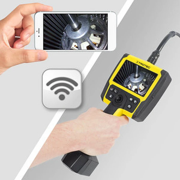 Этот профессиональный промышленный видеоскоп превращает непрямой визуальный осмотр в простое упражнение. Никаких кабелей и футляра - ничего, кроме превосходного качества изображения в прочном и легком компактном устройстве. При весе всего 400 г портативный блок управления легко позволяет выполнять длительные работы без утомления. Его зонд, изгибающийся во все стороны, может плавно управляться с помощью джойстика, а его головка камеры с титановым покрытием обеспечивает идеальный панорамный вид на зону контроля.